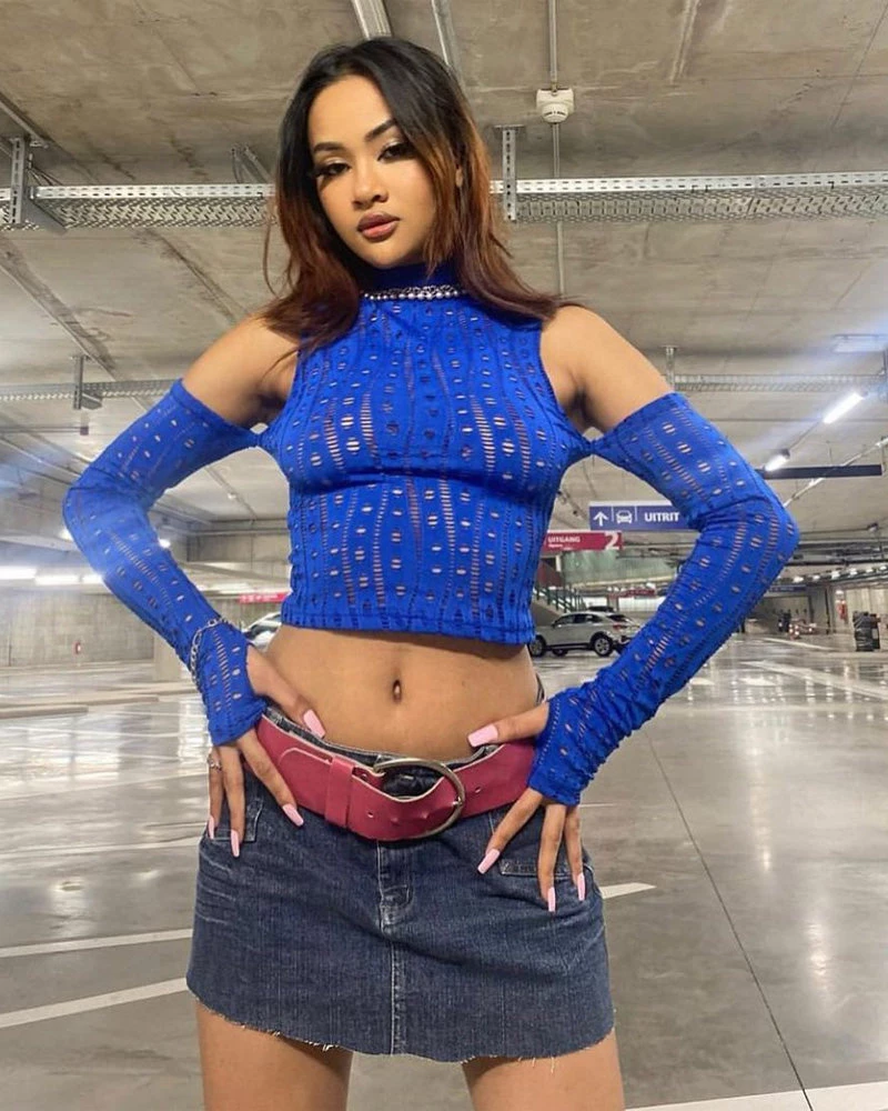 Show a little shoulder with the edgy Aurora long sleeve top. Hot girl but still the coldest in the Aurora long sleeve top.