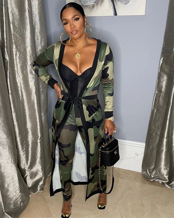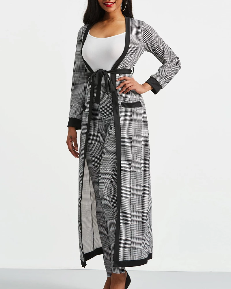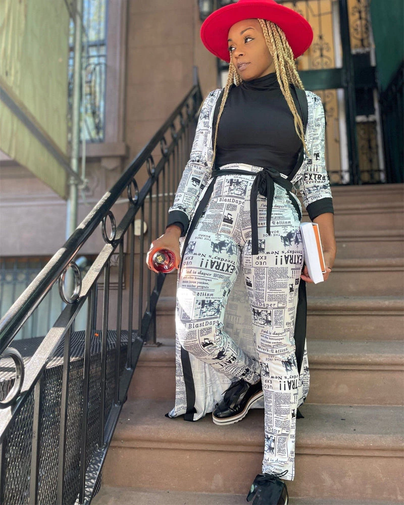 The coat features long, comfortably-fitting sleeves, and has two pockets in front. The pants are a straight cut, and have a hemline that ends at the ankles. Pair this pant suit with strappy heels for a chic casual look.
