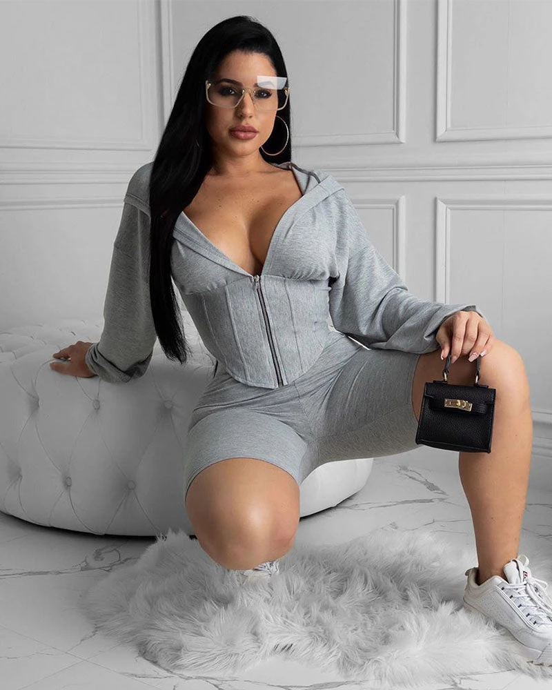 Very cute hooded 2pc Set, Sweatsuit Jacket with built in Corset style to slim the mid area