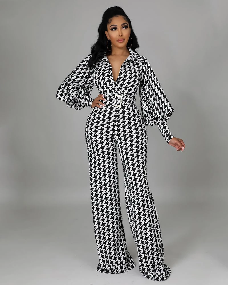 Absolutely fabulous, super stretchy, gigot sleeve, belted, houndstooth print jumpsuit. This jumpsuit is stunning and fits like a dream! An absolute must have!