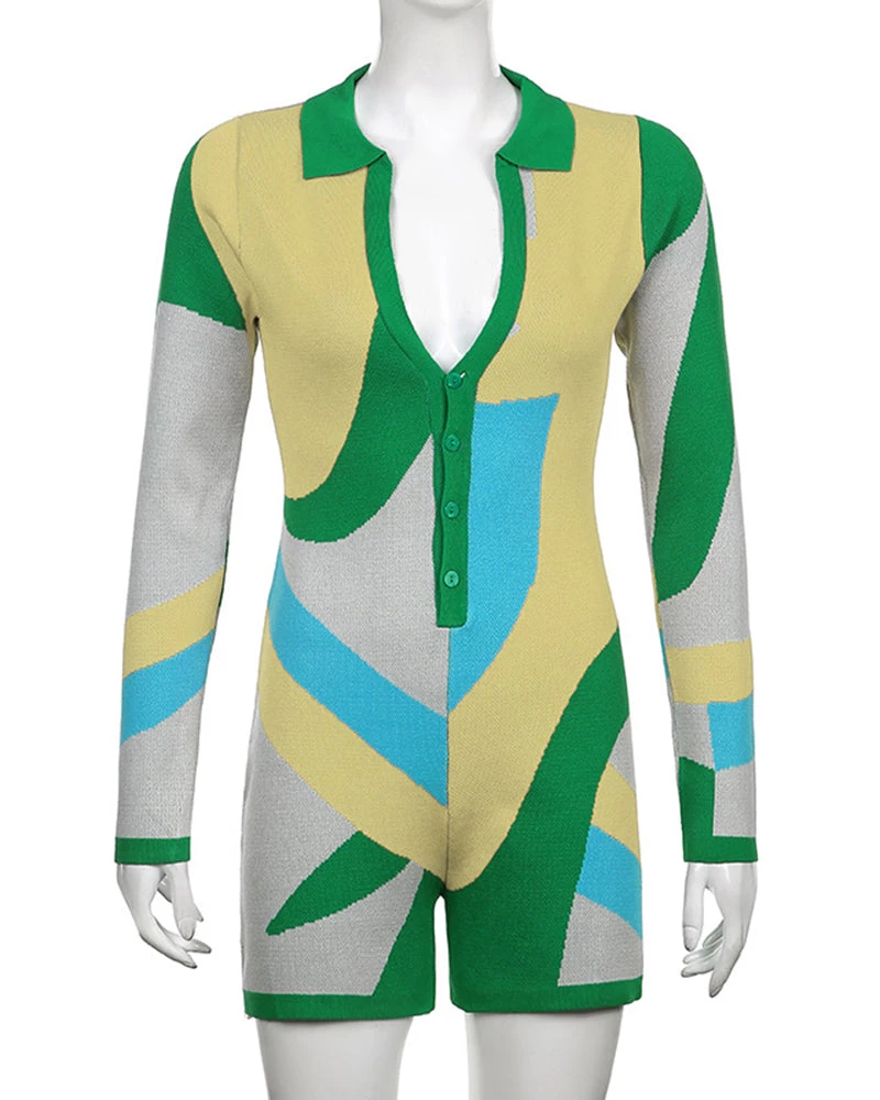 - Long sleeve multi color knitted romper