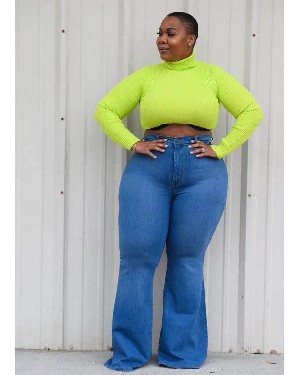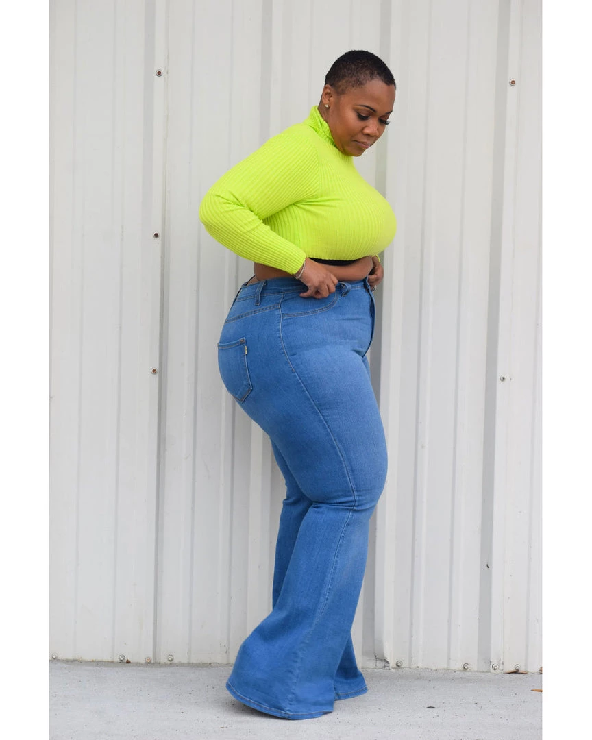 Featuring empire waistline, button and zipper closure, four pockets and flare legs, these trendy jeans flatter all kinds of figures and end in a easy fit.