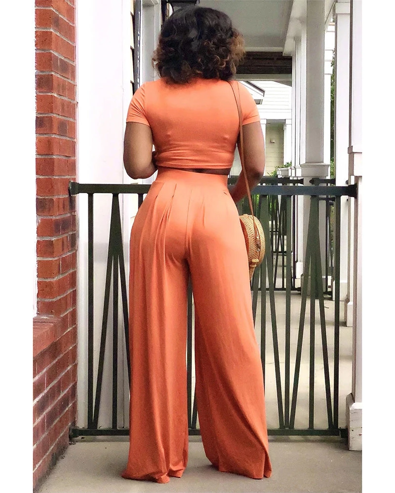 Stretch crop top&Wide leg