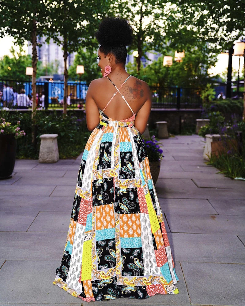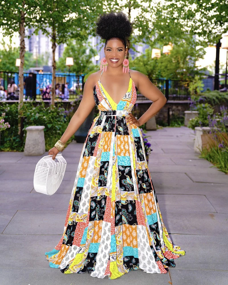 Time to take your vacation look up a notch ! You’ll for sure make a statement and have all eyes on you. This dress comes fully lined in a maxi length featuring a plunge neckline.Â