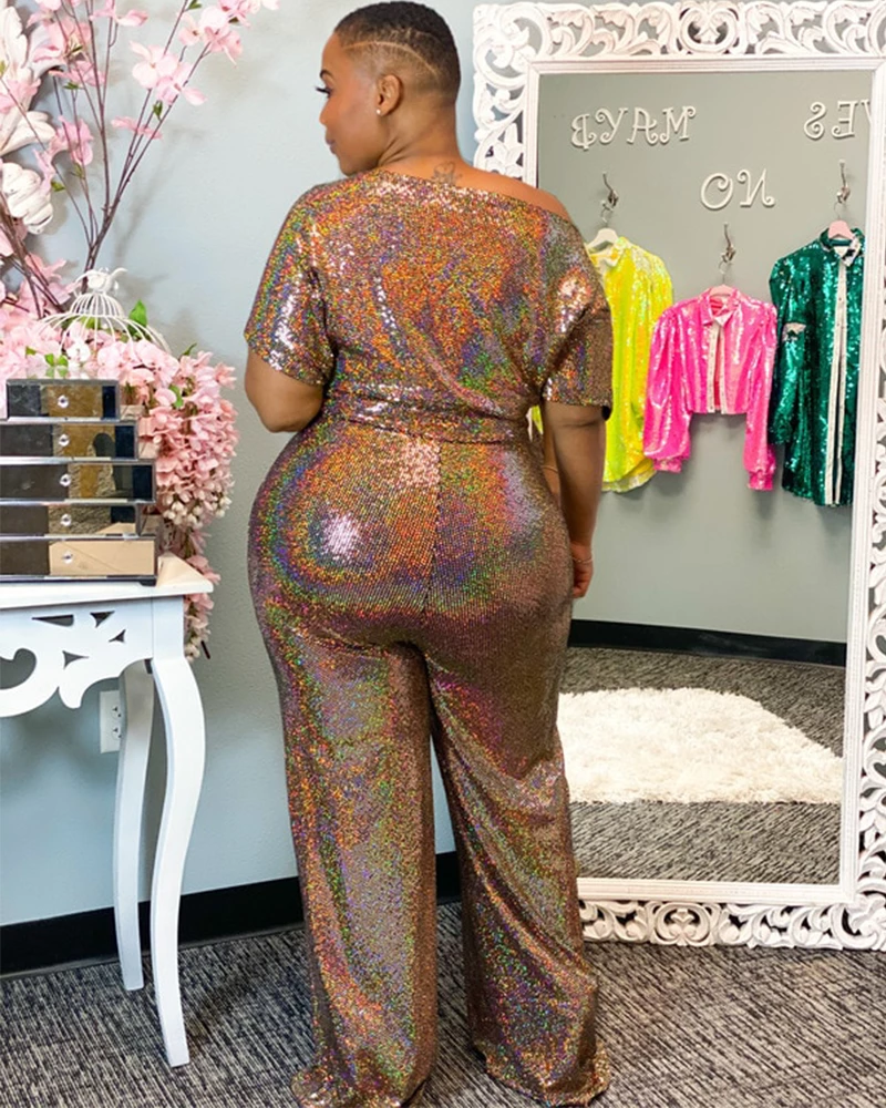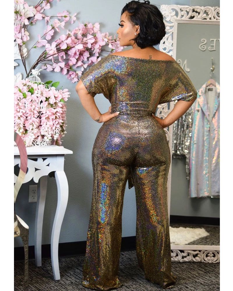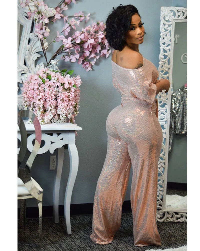 This outfit is on and off shoulder style jumpsuit. Subtle gliter makes it shining all the way. High quality of CHAMPAGNE JUMPSUIT is our priority.