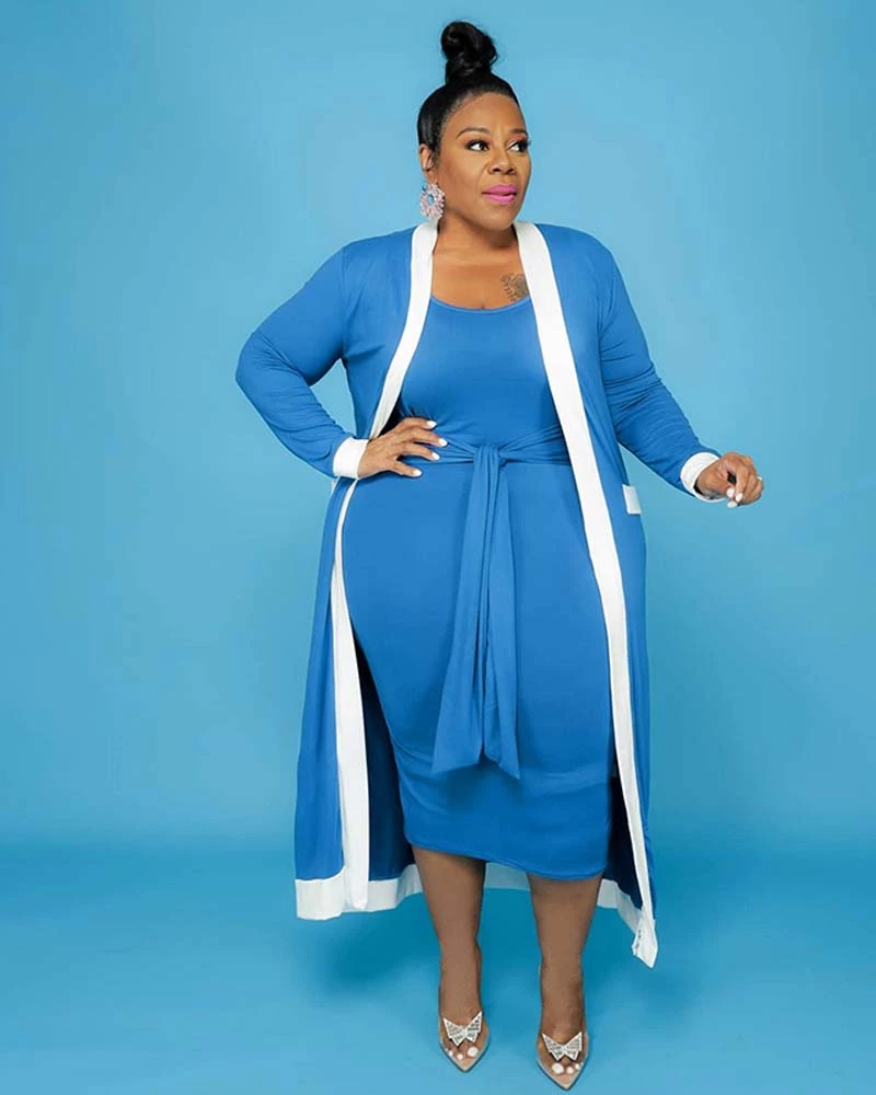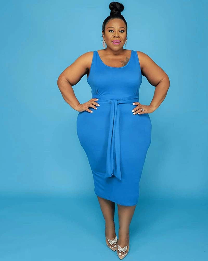- Solid colored midi tank dress with attached waist tie