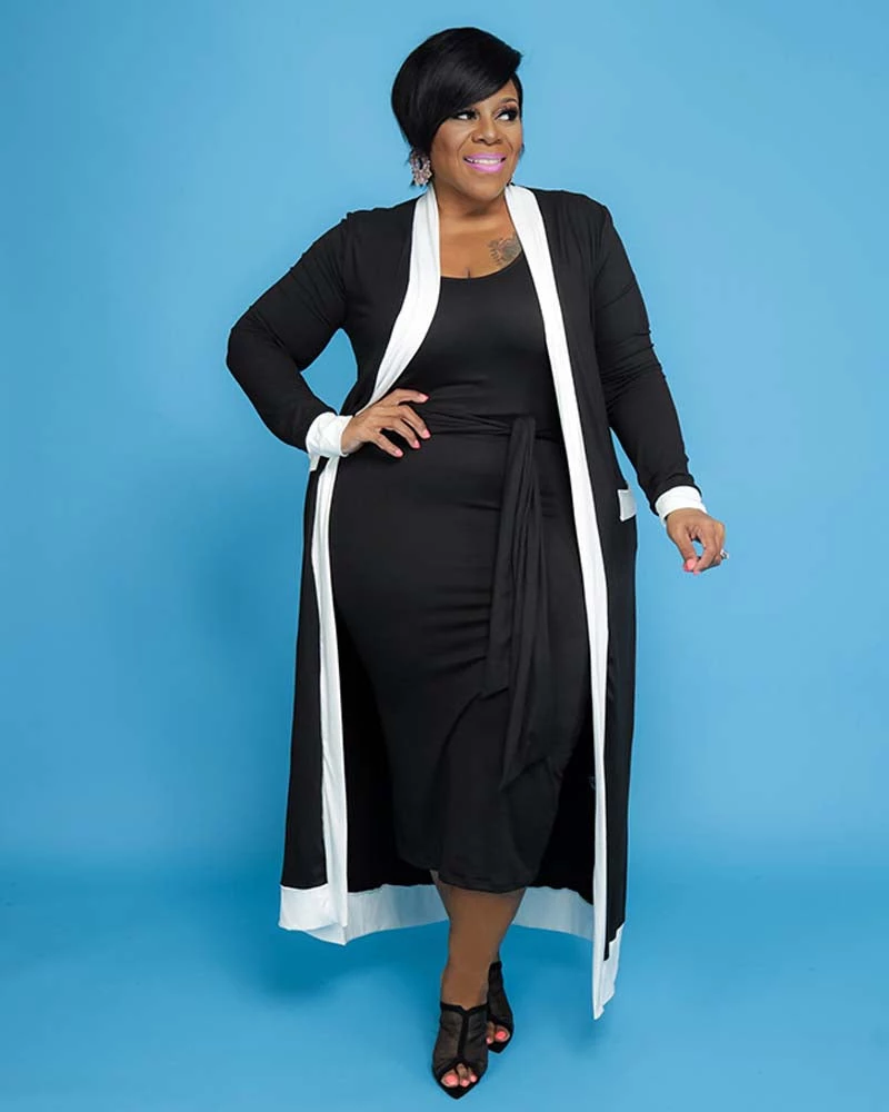 - Long sleeve cardigan with contrast color trim