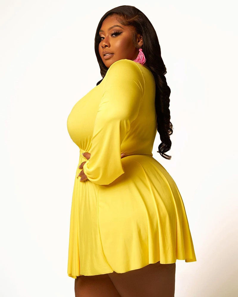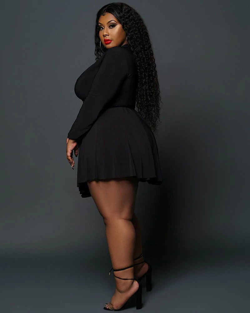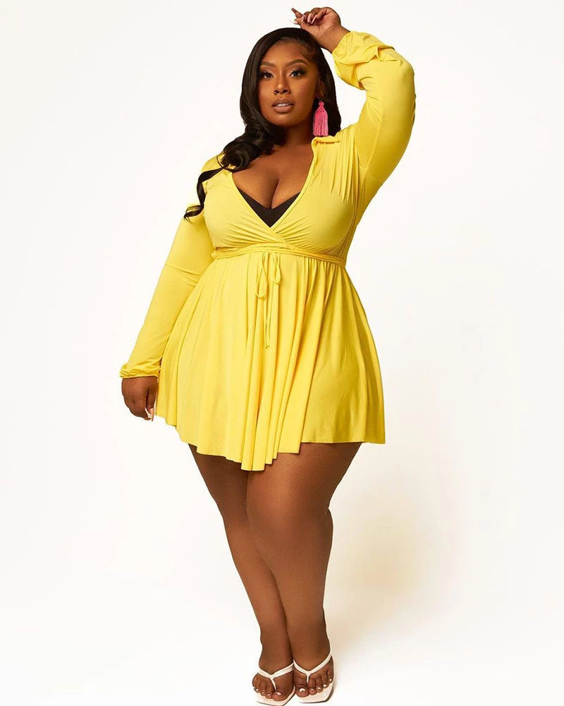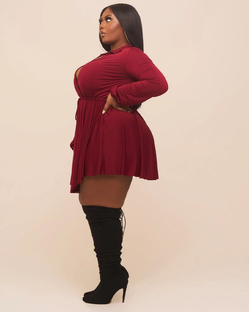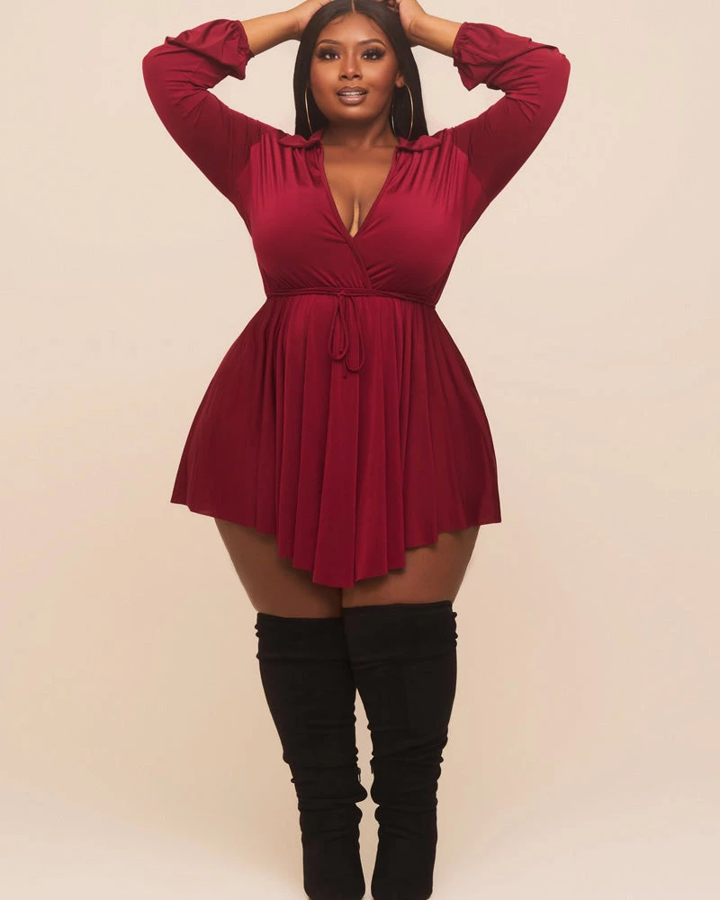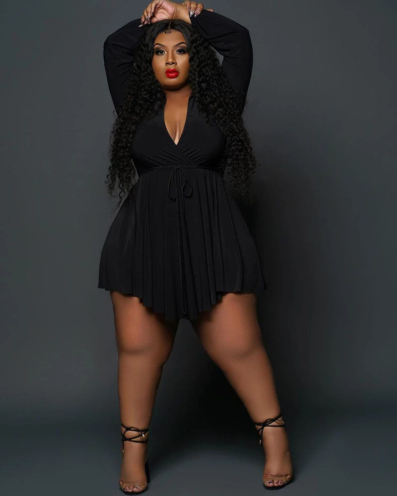 This 𝙳𝚎𝚎𝚙 𝙿𝚕𝚞𝚗𝚐𝚎 𝚆𝚊𝚝𝚎𝚛𝚏𝚊𝚕𝚕 𝙳𝚛𝚎𝚜𝚜 features, a stretchy fabric, v-neckline, long sleeves, twist front, no closures.