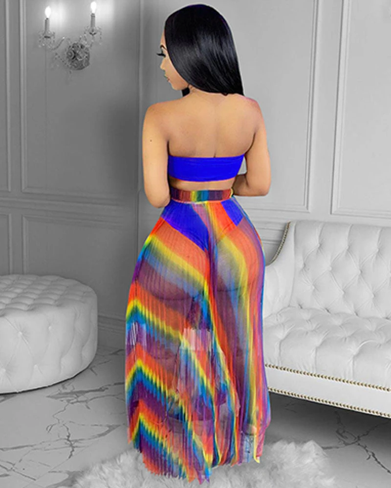 3 Piece Skirt Set Comes With Bandeau Top, Bottom, and skirt