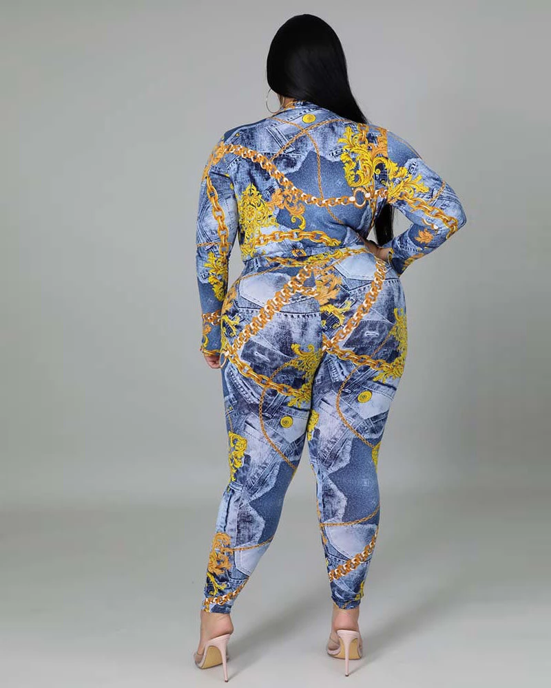 Two-piece set, Stretch bodysuit, Long sleeve, Collar, Plunging neckline, No closure, High waisted leggings, Elastic waistband.