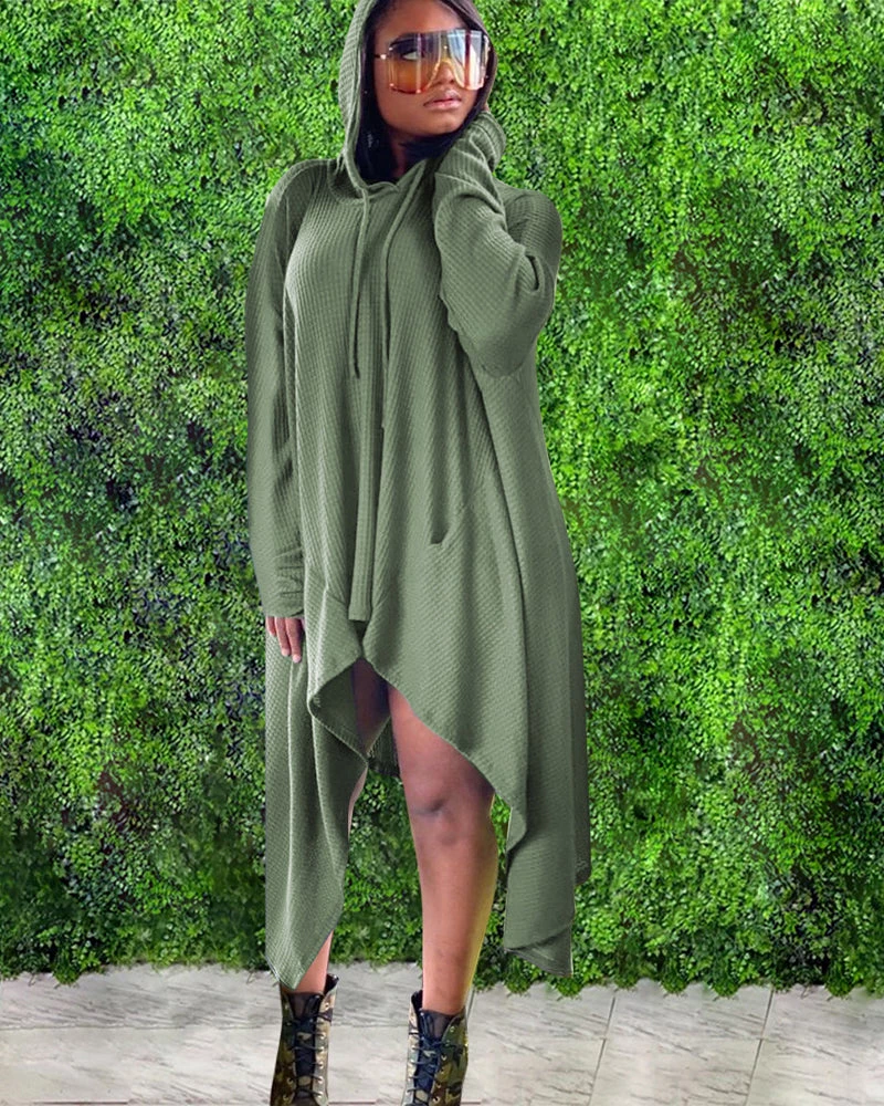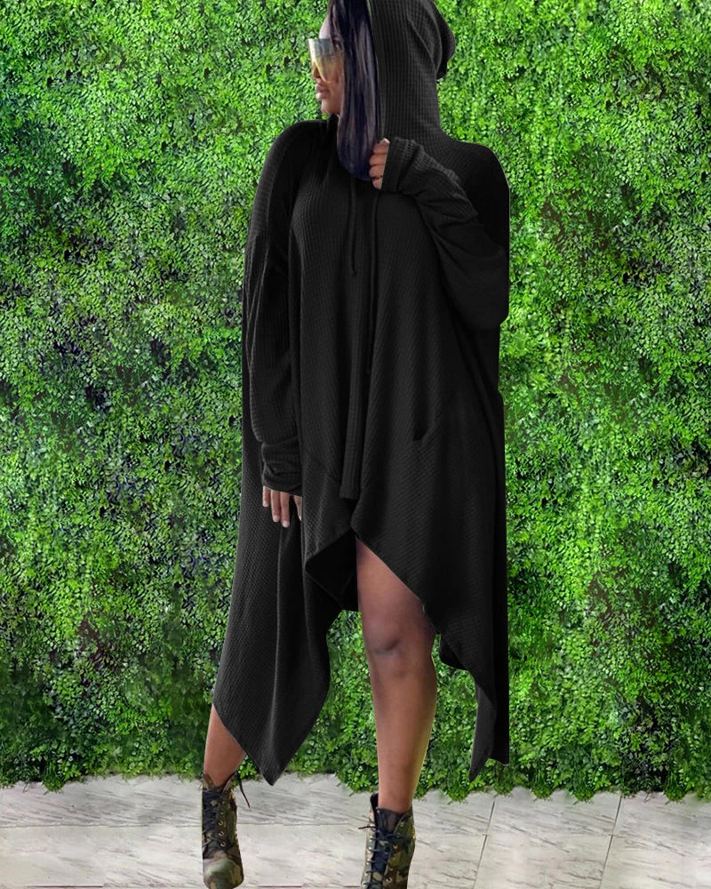 THUMBHOLE SLEEVES, FLOWY BODICE, FITTED ARMS, SPANDEX POLYESTER WAFFLE MATERIAL.