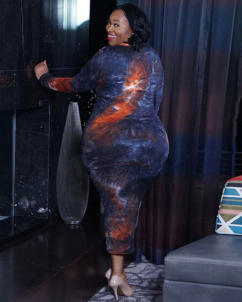 This Thinking It Through tie dye skirt set features, a stretchy fabric, round neckline crop top, long sleeves, high waist skirt, back slit, no closures.