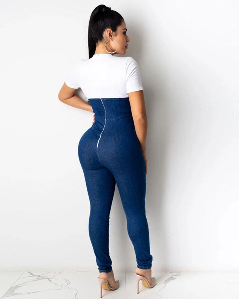- The Sade Corset Denim Jumpsuit