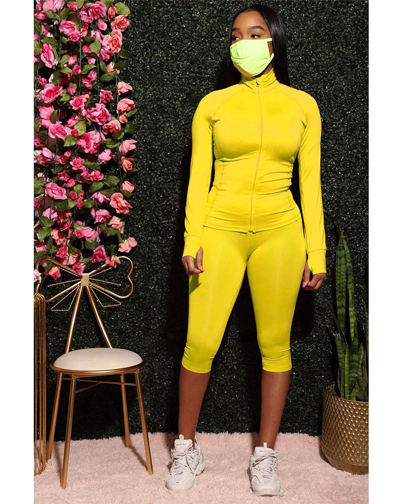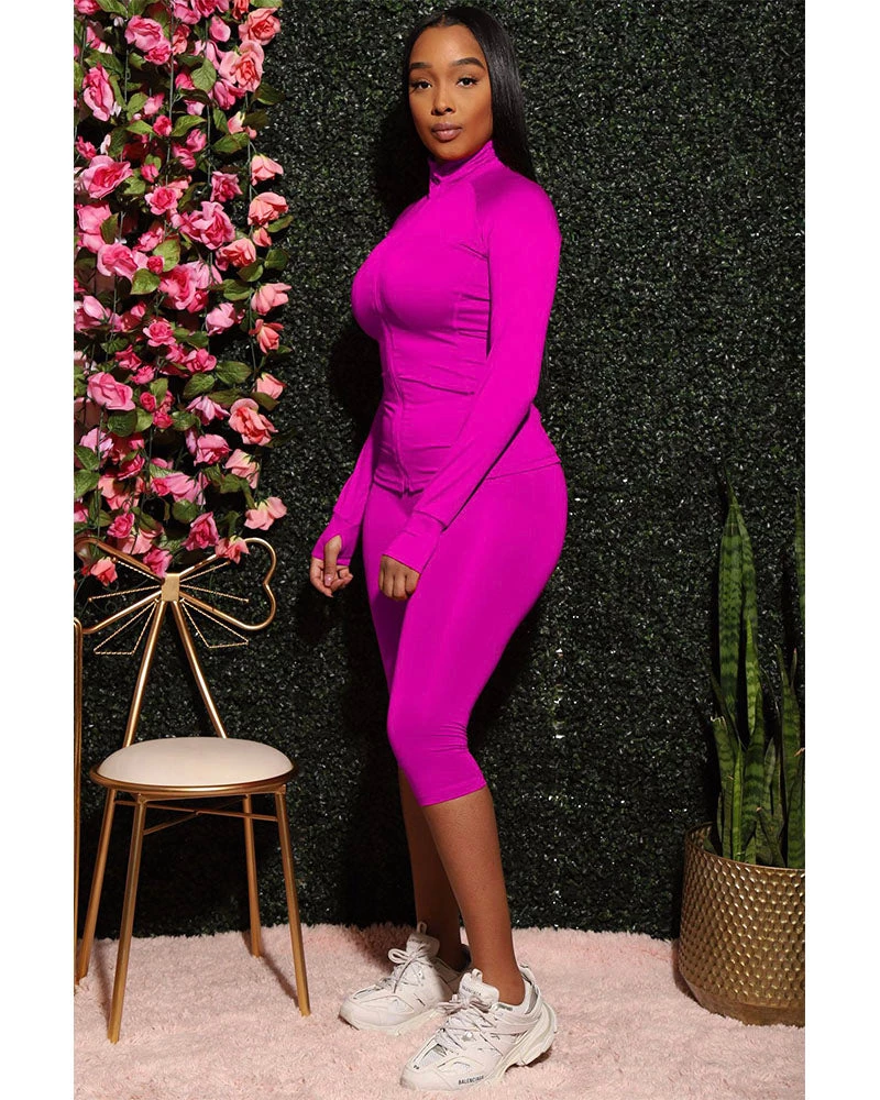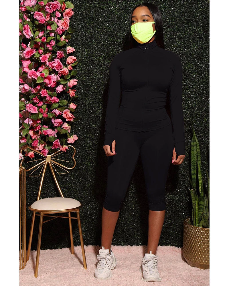 It’s pretty clear, this is an easy fit and you need! Be calm, comfortable, and cute in this athletic set. The top features a front zippered jacket with a keyhole sleeve. The bottoms are high waisted with an amazing fit.