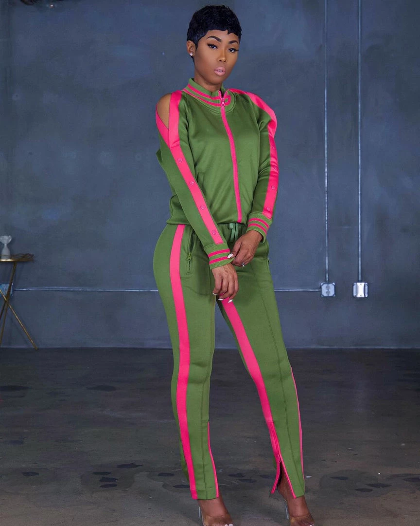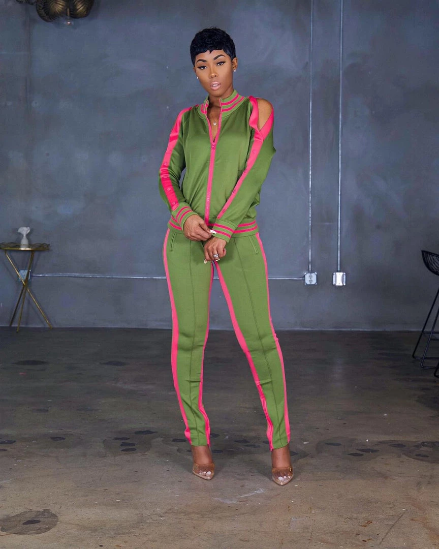 This Level Up Jogger Set features semi stretchy fabric, round neckline, long sleeves, jogger pants , finished with front zipper closure on the top.