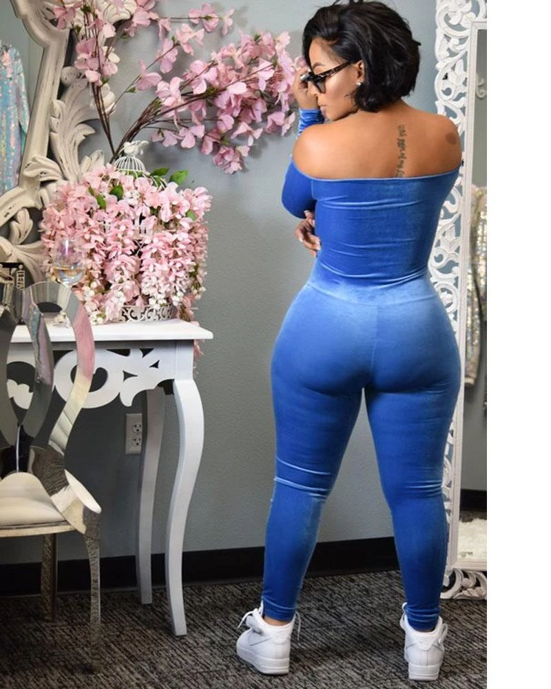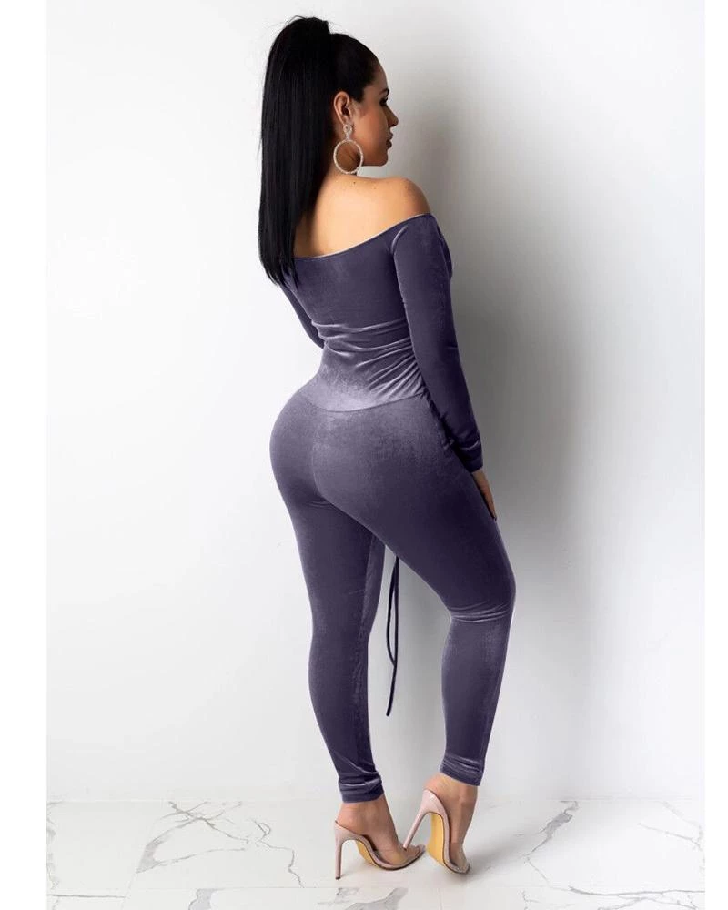 The Dream Velour Jumpsuit, Can be worn on and off Shoulder