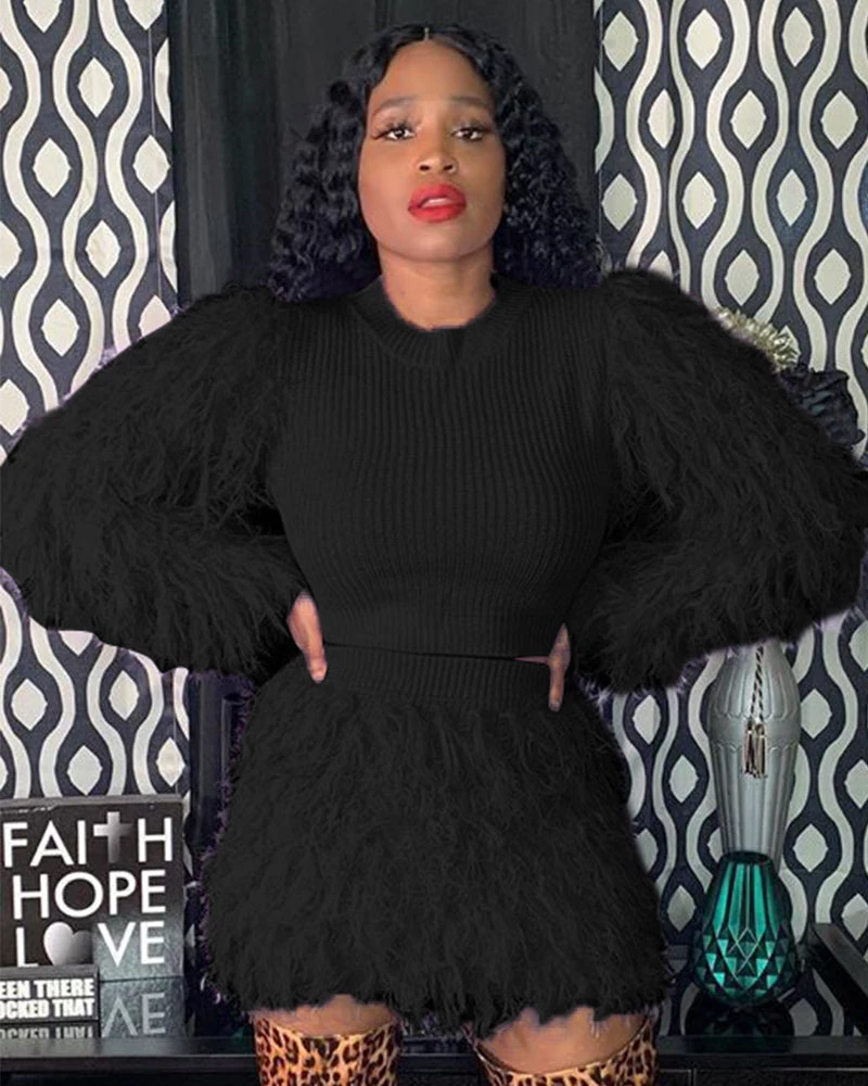 Our Fluffy Sweater Skirt Set use very nice fabric, it will makes you feel comfortable to wear. Wear for party or fashion activity. Unique design will makes you charming and attractive in any occasion.