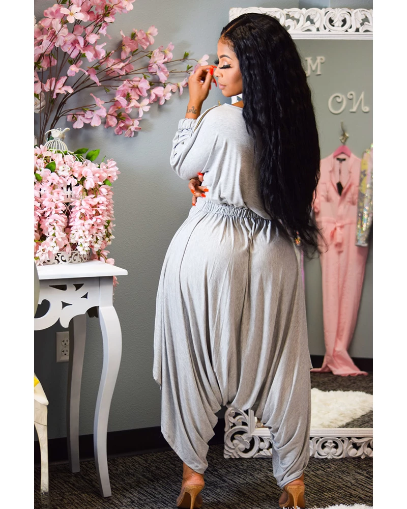 Make the right kind of statement in this jumpsuit. Featuring a gray material, plunge neckline and short sleeves, team it with a mini bag and strappy heels for Saturday night with your dolls.