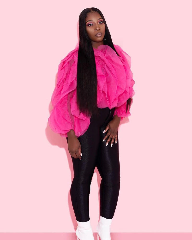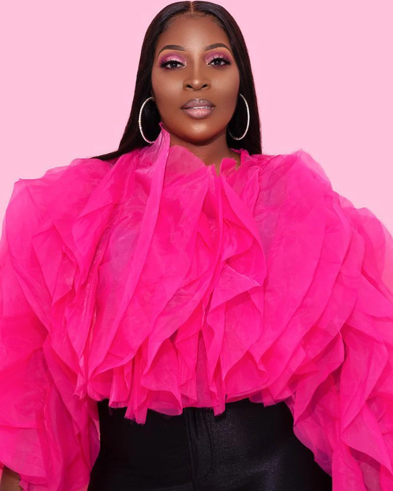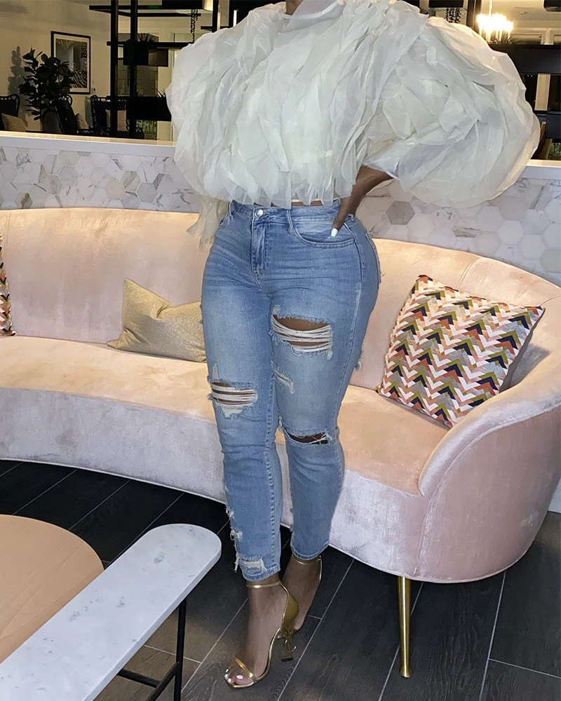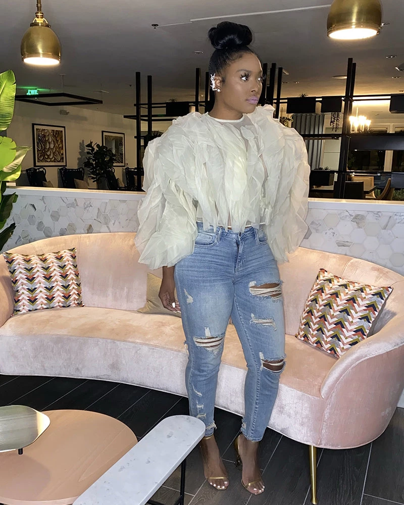 - Chiffon top with petal like detail