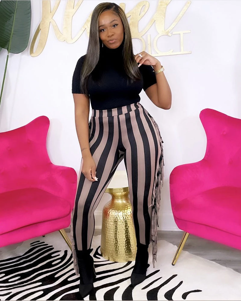 - High waist fringe pants
