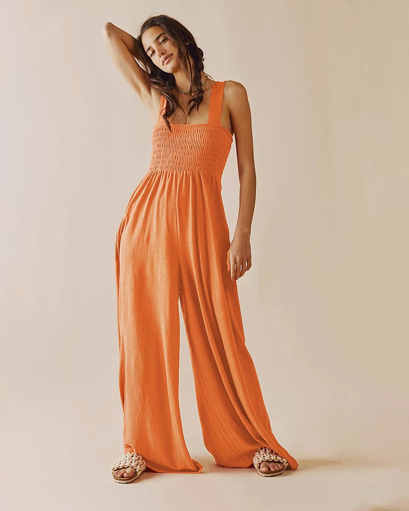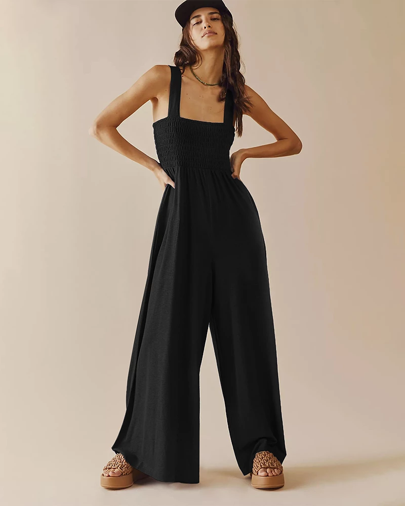 - SMOCKED TOP JUMPSUIT WITH POCKETS