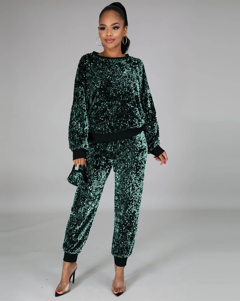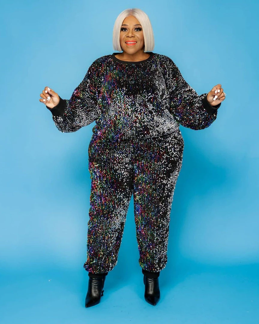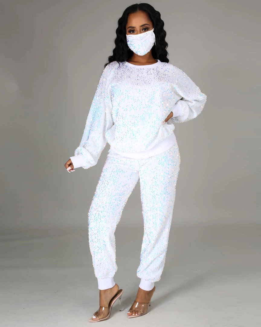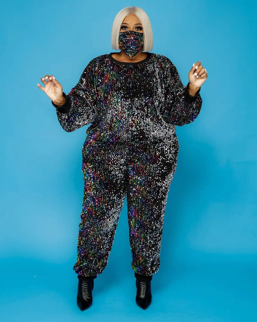 This Rainbow Sequin Jogger Set will give you a different experience . Featuring an intricate sequin design , you are sure to sparkle out from the crowd.