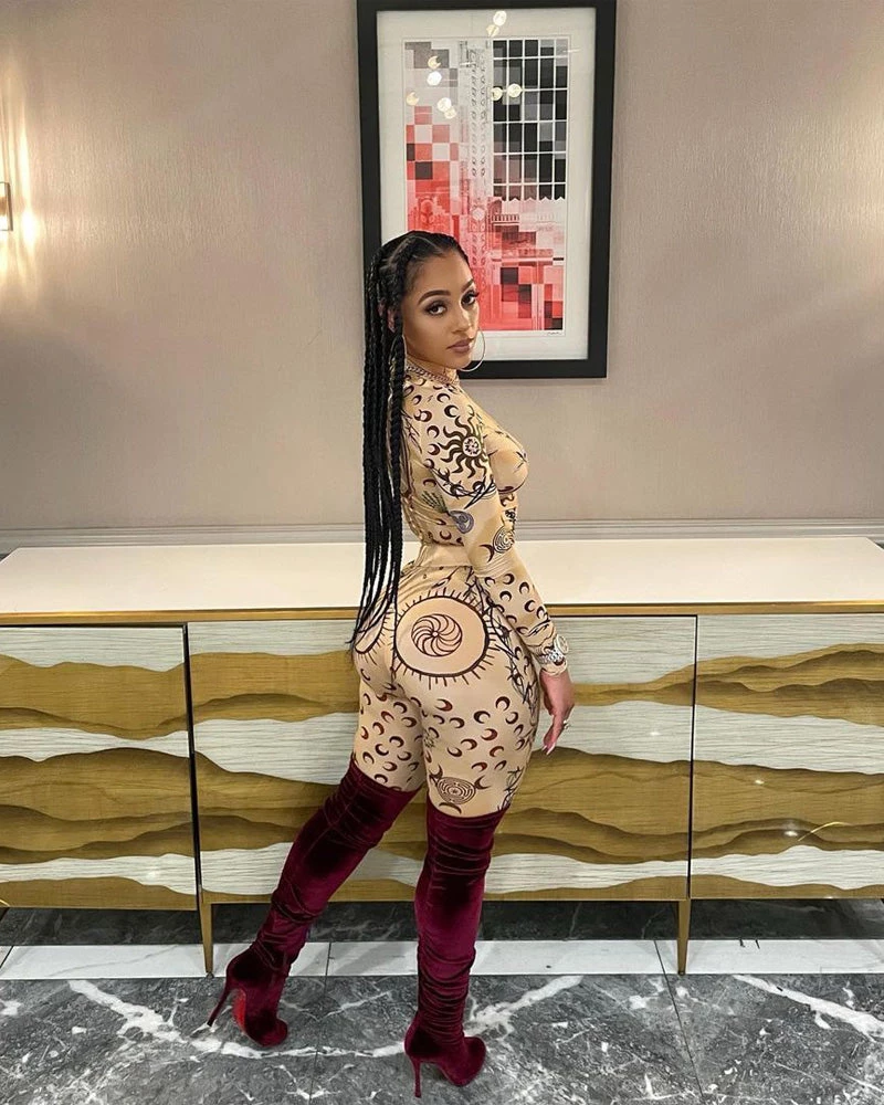 Cut with a high neck printed with the Amor Fati name in hand poke style, both the women and men’s long sleeved tops feature the same distribution of motifs. A central labyrinth surrounded by all over moon sections and tribal motifs stands out in the front alongside the Manic Soul Machine FW18 collection name. In the back, a large circular chart inspired by astrological illustration and moon phases is the central motif and is flanked by Radical Call for Love lettering, both a collection name and a motto of the brand.