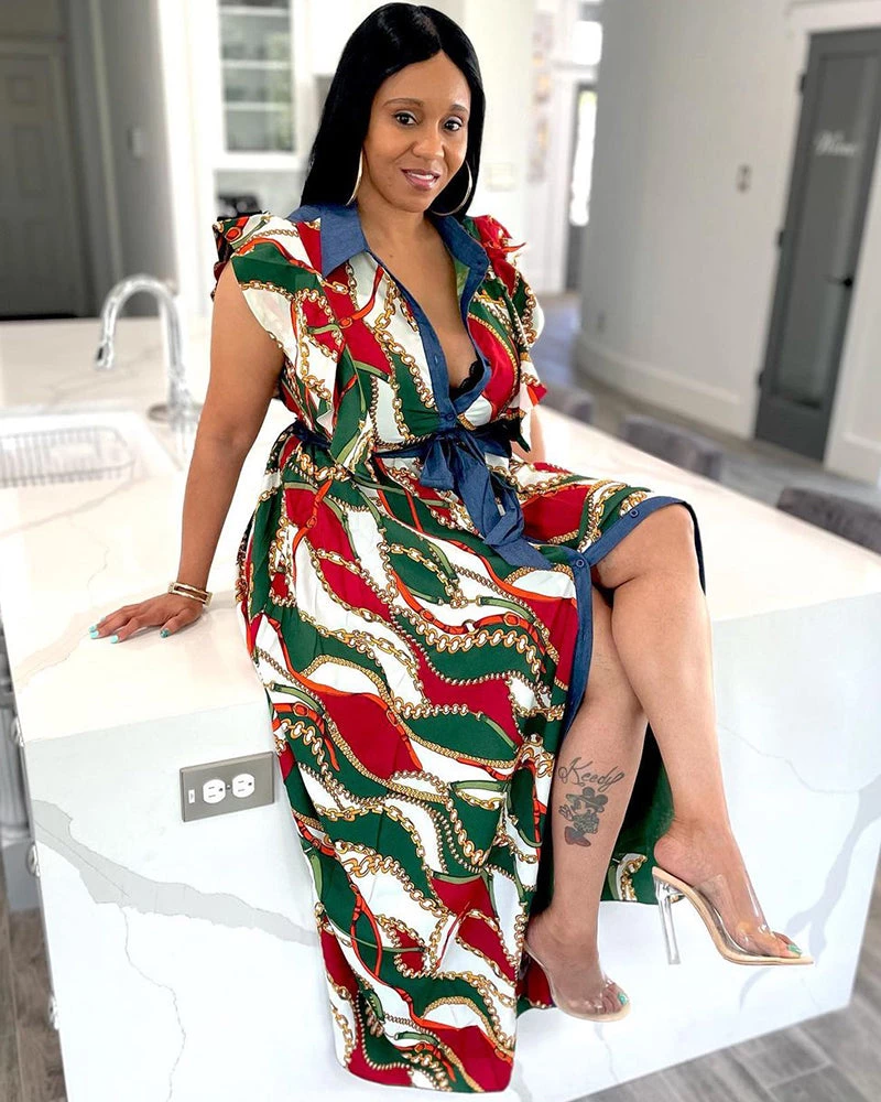Featuring a stretchy fabric, zipper closure, a full maxi length, ruffle design at shoulder, and shirt collar, this dress is suitable for all kinds of occasions.